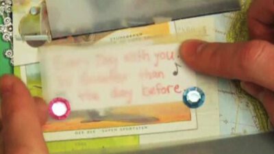 Instructions Step 1: Fold Fold one piece of card stock in half and make a firm crease. TIP: Make sure the card stock is the same size as or smaller than your scrapbook pages. Step 2: Cut slits Cut two slits in the middle of the fold, 1 1/2 inches apart. The slits should be …