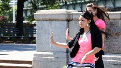 - Step 11: Prepare to shimmy Now you’re going to shimmy. Start with your feet side by side, your arms out at chest level, and your hands in the same position as before.