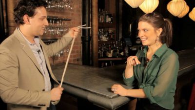 Transcript A: So I have another bar bet for you. B: Okay. A: I have $5 here for you. You get to keep it. There’s just two things. You have to get the $5 out from underneath the bottle. You’re not allowed to knock over the bottle and you’re not allowed to touch the bottle. …