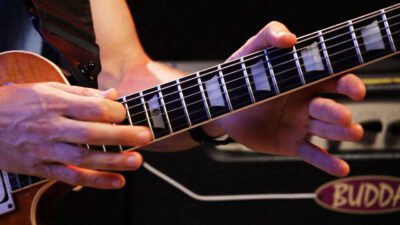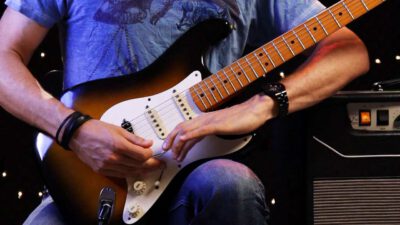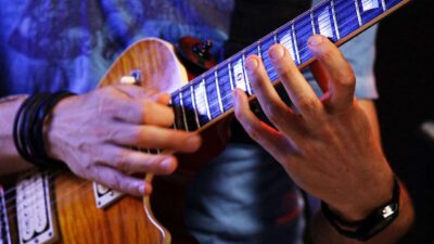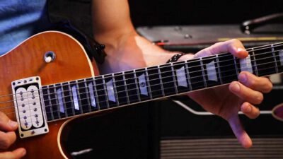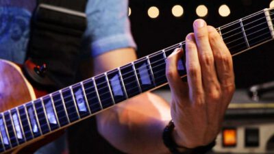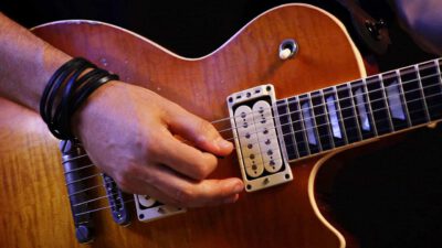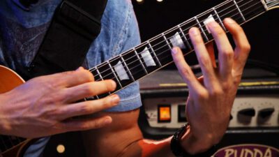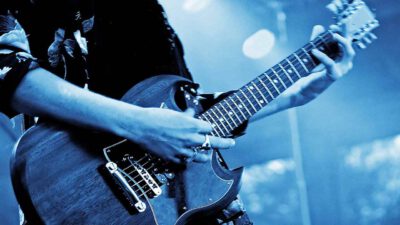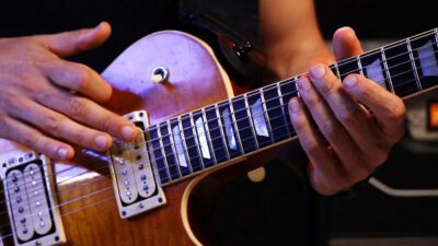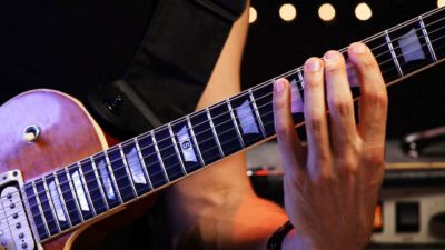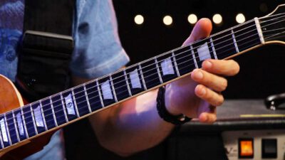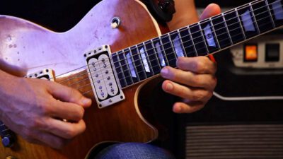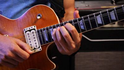 Transcript I’d like to talk a little bit about rock cliches. There are so many of them. I’ve chosen just a few to focus on. To start with, let’s take a loot at this little pattern popularized by Chuck Berry. All I’m doing is taking my first finger, playing up the fourth fret, or wherever …