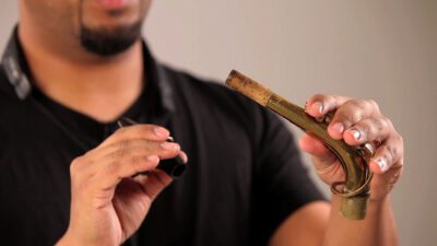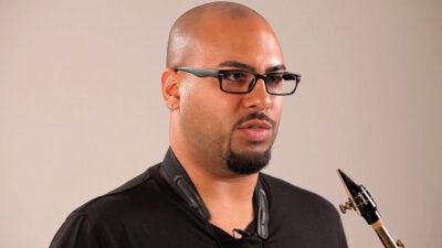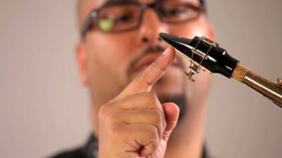 Transcript As with the guitar, there’s multiple ways to play a few notes on this instrument. The most common ones, when we get to B-flat in the middle and the second octave of the horn, we’ve got A, and we’ve got a side B-flat key here to make the A a B-flat. I’ve got the …