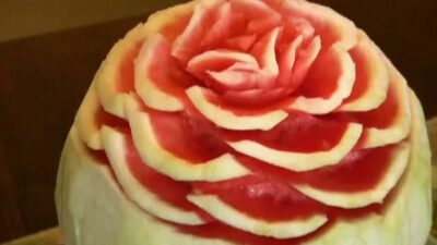 Instructions Step 1: Cut the bottom Place the watermelon on a towel to catch the juice. Cut off a small amount of the bottom of the watermelon to make a flat surface for it to stand up tall. TIP: Place the watermelon on a turntable for easy maneuvering. Step 2: Carve the skin Carve off …
