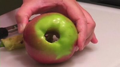 Instructions Step 1: Cut the core Center the corer over the apple’s stem end, pierce the apple, and push the corer all the way through. If you don’t have a corer, push a paring knife through the apple and cut around the core. TIP: If you don’t need to keep the apple whole, cut the …