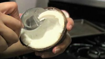 Instructions Step 1: Preheat oven Preheat your oven to 400 degrees. Step 2: Pierce the dots Pierce the three indentations on the top of the coconut using either an ice pick or a long, clean nail. Do this over a bowl in the sink so you can catch the coconut water. TIP: Drink the coconut …