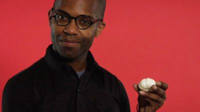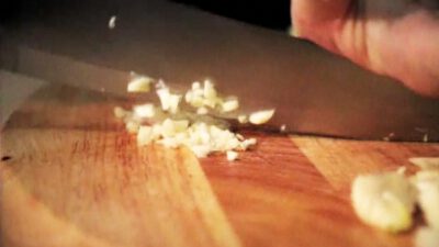 Transcript Man 1: Need to peel some garlic? Man 2: Quick tips! Man 1: Press the side of a wide knife blade across the clove, then press down on the blade with the heal of your hand. The clove will crack open with the skin sliding off. Mission accomplished!