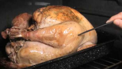 Instructions Step 1: Test your thermometer Test the accuracy of your instant-read meat thermometer. Insert the tip 2 inches deep into boiling water. If it is properly calibrated, it will read 212 degrees Fahrenheit at sea level. Step 2: Use recommended cooking time as a guideline Use the turkey’s recommended cooking time as a guideline, …
