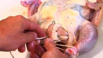 Instructions Step 1: Tie the legs Position the chicken. Take the string and make a figure 8 around the knuckles of the legs. Step 2: Tie the breast & wings Tie the breast & wings. Bring the string over and under the breasts, pinning the wings to the breasts. Step 3: Tie a tight knot …