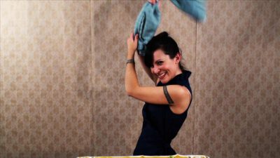 Transcript Woman: Need to dry greens in a jiffy? Man: Quick tips! Woman: Put them into a clean pillowcase and spin the case above your head like a helicopter blade for 30 seconds. Woosh!