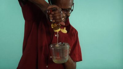 Transcript Male 1: Measuring honey? Male 2: Quick tips! Male 1: Coat the cup with non-stick cooking spray or a thin layer of vegetable oil before adding the honey and it will slide right out. Neat!