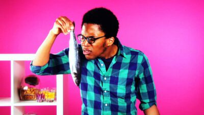 Transcript Woman: Fishy odor? Man: Quick tips! Woman: Put a tablespoon of peanut butter in the pan as your fry the fish, it will absorb the stink. Sweet smell of success!