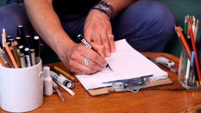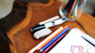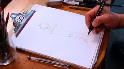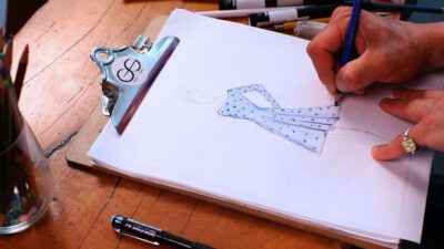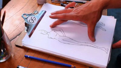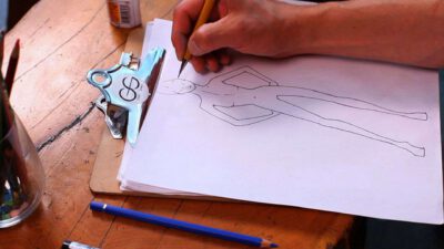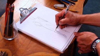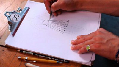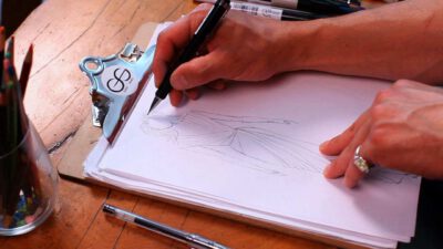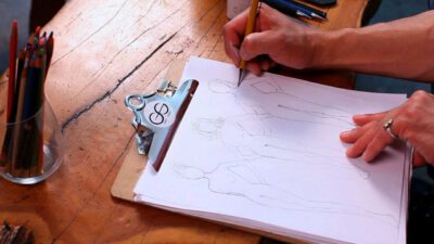 Transcript Something that is very important as well in fashion design is coloring your fashion sketches. After you’ve inked in the whole situation, you can take color pencils, pastels, wash, watercolor, whatever you want. I’m going to do this one with some pastels, because they’re really nice to shade. So you just start out on …